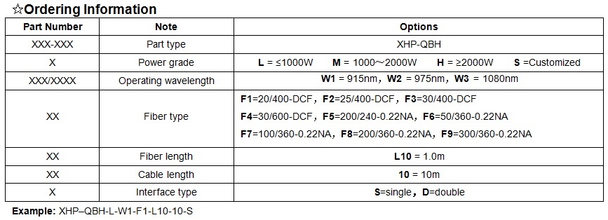 XHP fiber laser cable(QBH) features low loss, high holding power, high reflective capability, with water-cooling and safe-lock options, stable and reliable. Itcan be integrated into fiber laser device, laser processing system and directsemi-fiber coupling laser etc.