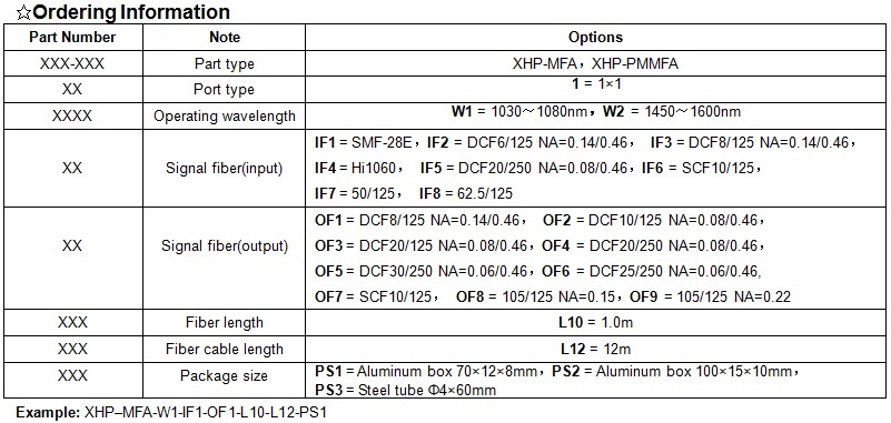 Fiber mode field adaptor (MFA) features high output power, high converting efficiency, stable and reliable. It can be integrated into medium and high power fiber laser and amplifier.