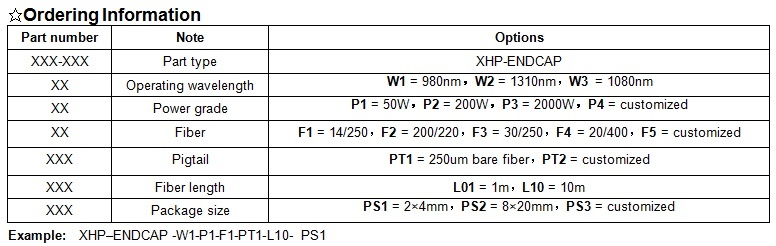 XHP fiber end-cap features high holding power, low laser beam degradation, high return loss, stable and reliable. It can be integrated into fiber laser, fiber amplifier and laser processing equipment.