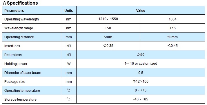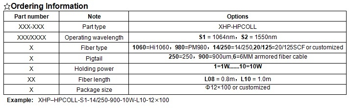 XHP high power fiber collimator features low insert loss, high isolation, high return loss, stable and reliable. It can be integrated into medium and high power fiber laser, fiber amplifier and R&D test equipment etc.