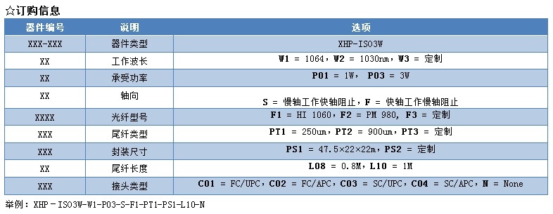 讯鸿(XHP)生产的3W光纤隔离器(XHP-ISO3W)插入损耗低,隔离度高,体积非常小,性能稳定可靠。适用于光纤激光器和仪器设备等。