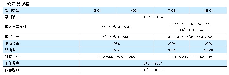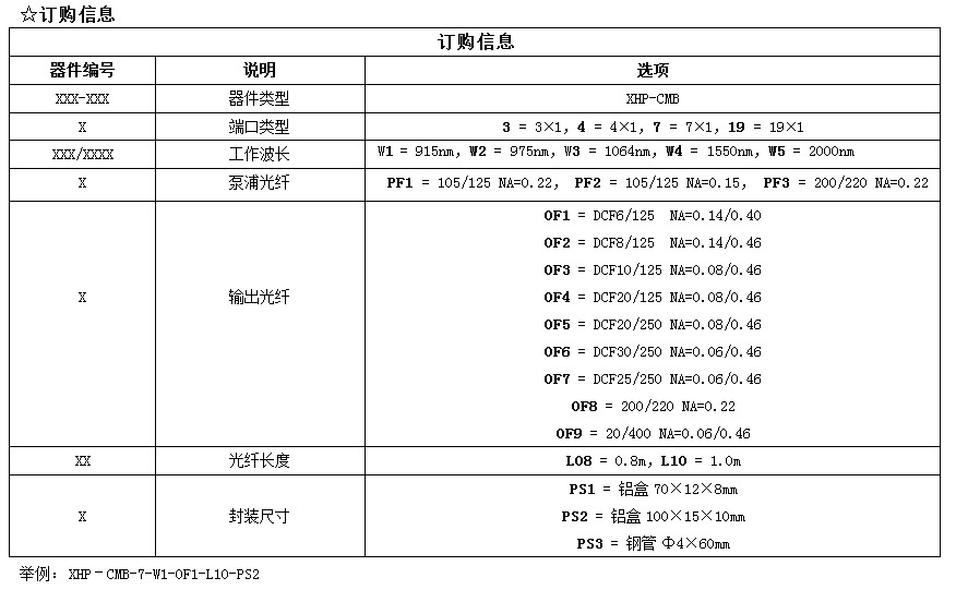 讯鸿(XHP)生产的N×1光纤泵浦信号合束器(XHP-CMB)泵浦合束效率高,信号插入损耗小,稳定可靠。适用于中高功率光纤激光器、中高功率光纤放大器和科研试验设备。