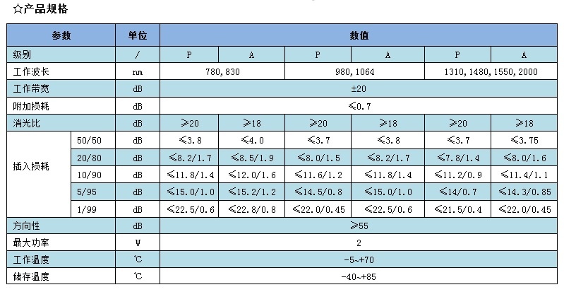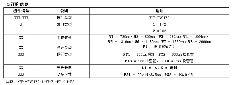 讯鸿(XHP)生产的1×2/2×2保偏光纤耦合器(XHP-PMC1X2)插入损耗低,波长和分光比可定制,稳定可靠。适用于光纤陀螺、光纤传感器、光纤检测设备和保偏光纤放大器等。