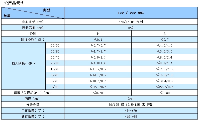 讯鸿(XHP)生产的1×2多模光纤耦合器(XHP-MMC)插入损耗低,回损高,PDL小,稳定可靠。适用于光纤通讯网络、光纤传感系统和光纤测试设备等。
