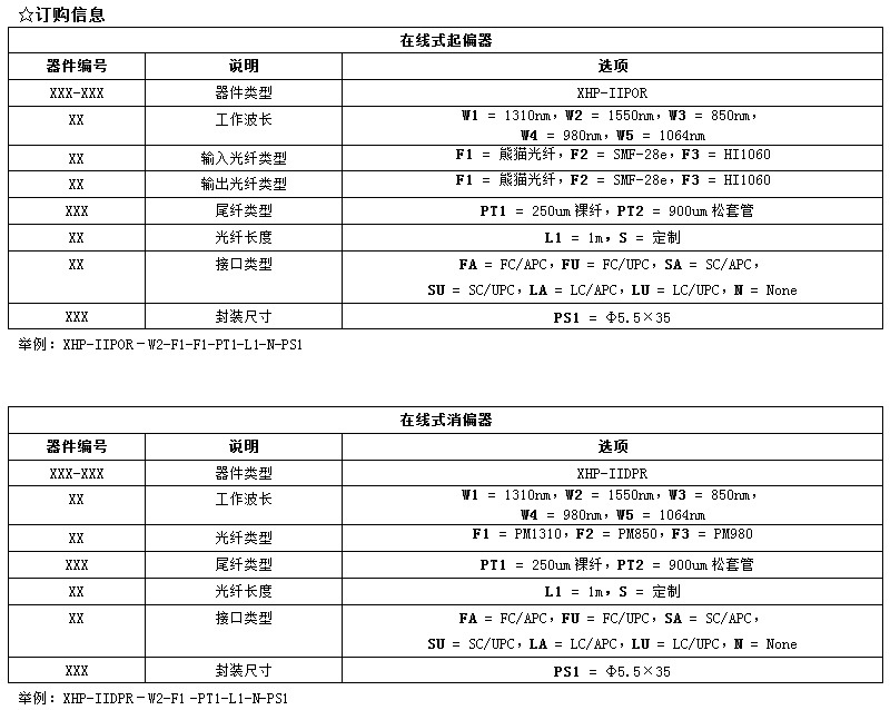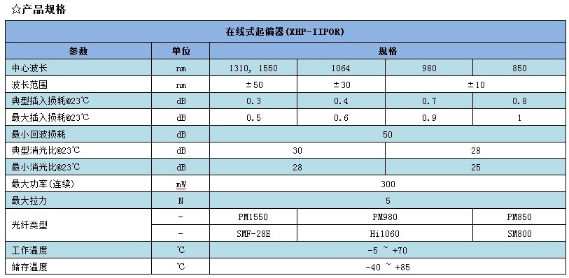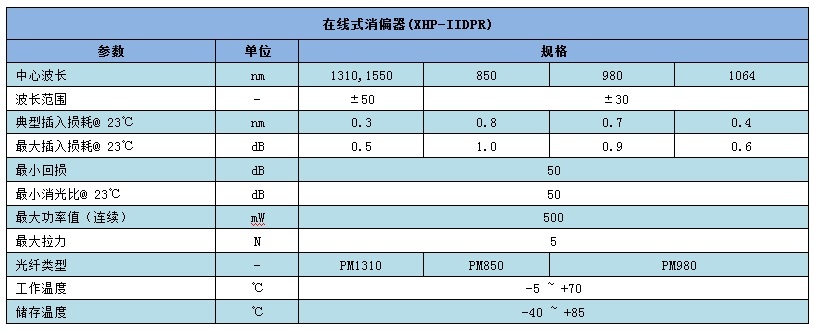 讯鸿(XHP)生产的在线式起偏器/消偏器(XHP-IIPOR/IIDPR)插入损耗低,回损高,消光比高,稳定可靠。适用于通讯系统、光纤传感器、光纤检测设备和科研实验等。