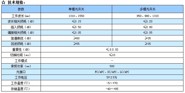 讯鸿提供的机械式光开关系列,包括1´2,1´3,1´4,1´8,1´12等规格,响应快,插损小,稳定可靠,简单易用,非常适合于光学测试和光网络应用。